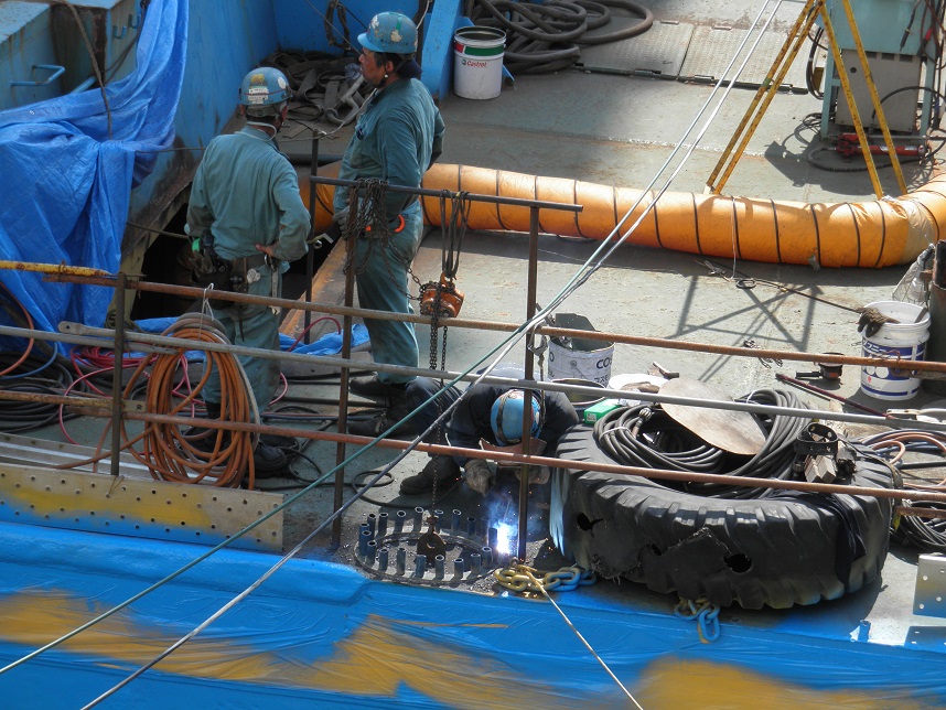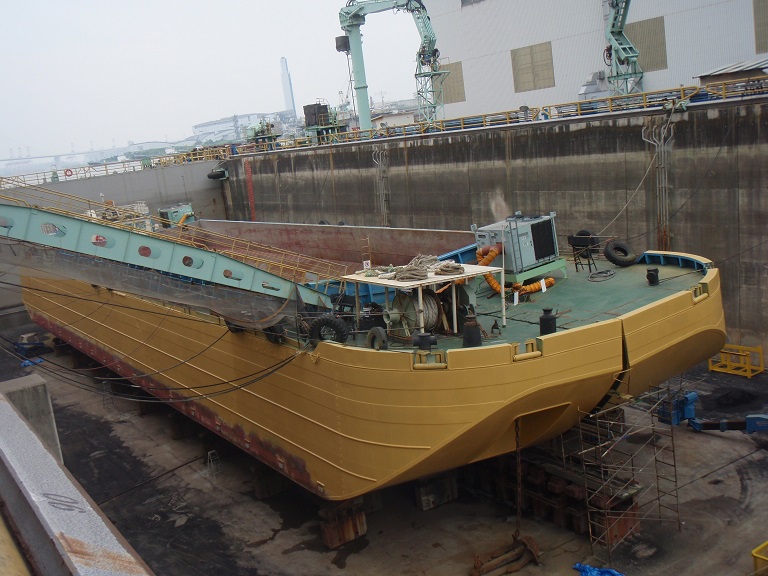 土運船「1701松山丸」「1702松山丸」の整備が今日も続いています。