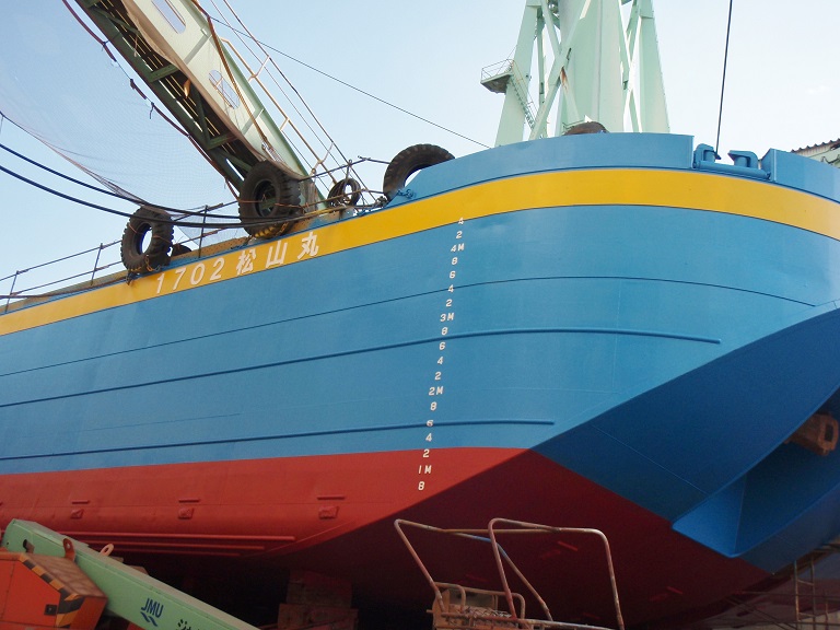 側面・船底の塗装が完了しました。船名も綺麗に表示されています。